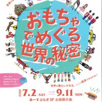 2022/7/2㈯~9/11㈰まで神奈川県立地球市民かながわプラザ「あーすぷらざ」で企画展「おもちゃでめぐる世界の秘密」開催中です!
